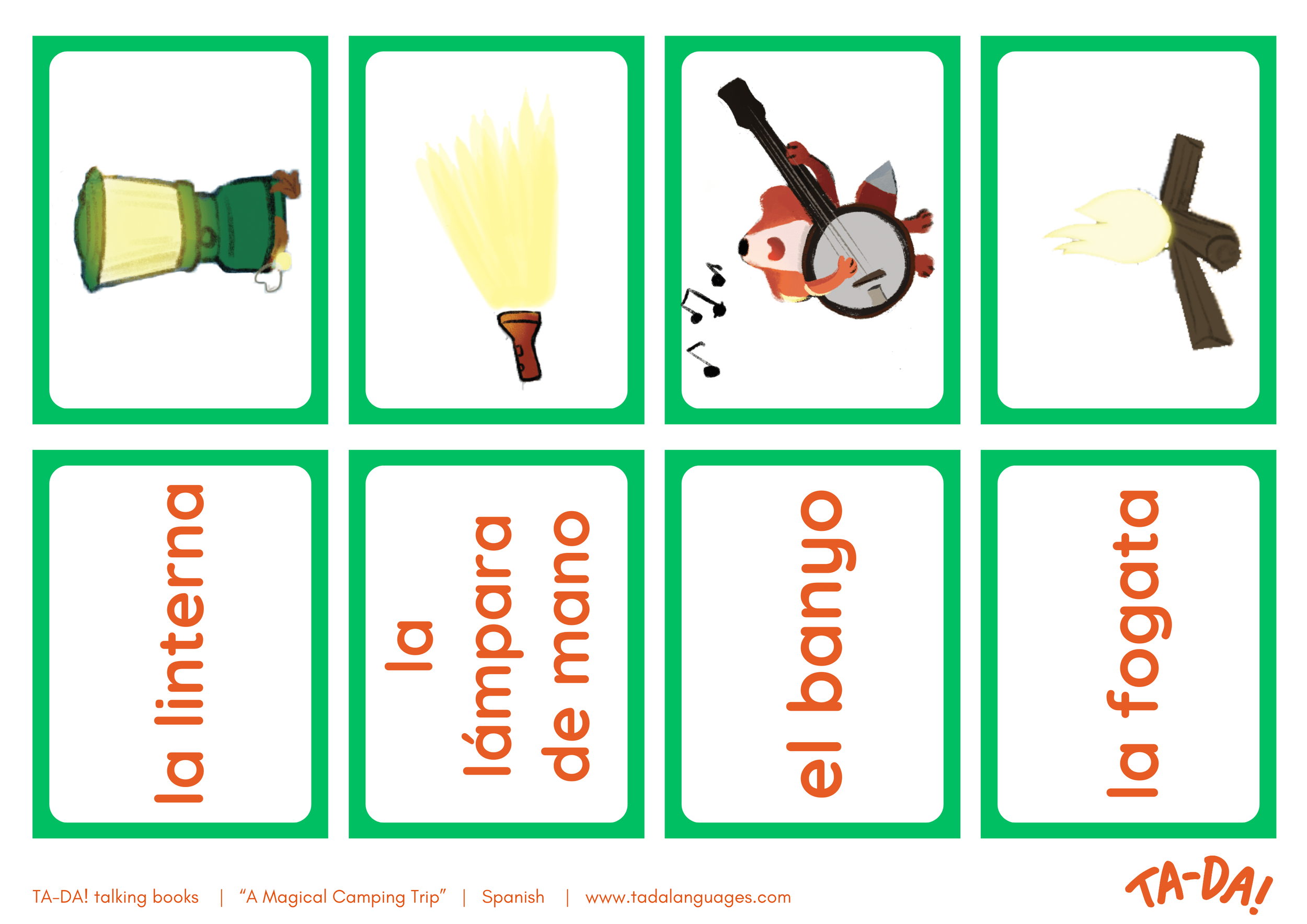 Introducing TA-DA! talking and musical books—where all it takes is a finger’s touch to a beautiful, eco-friendly book’s pages to bring 12 vocabulary words pronounced by native speaking kids from our partnering schools — and original music to life!