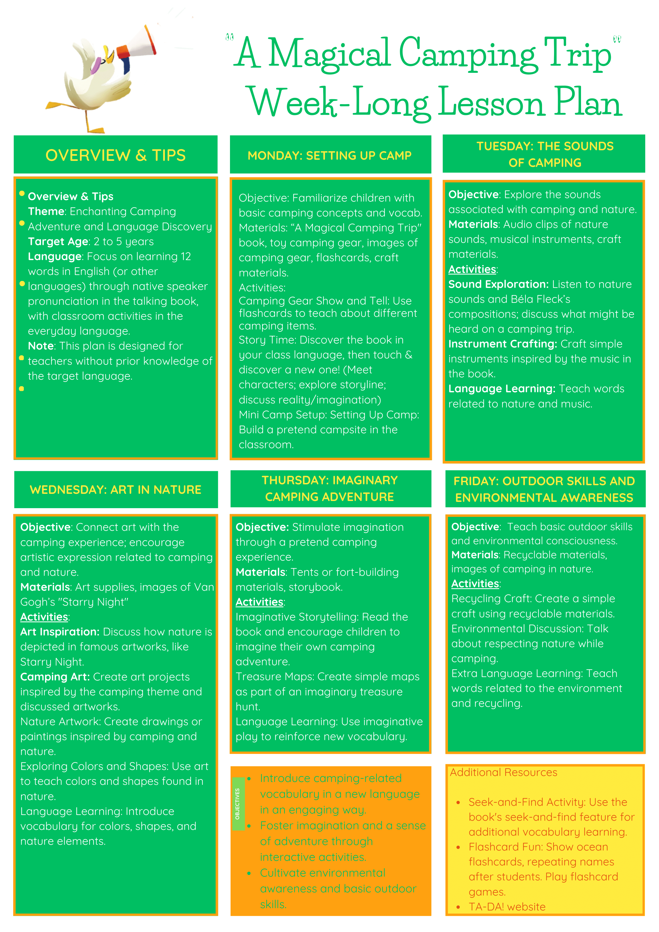 CAMPING LESSON PLANS