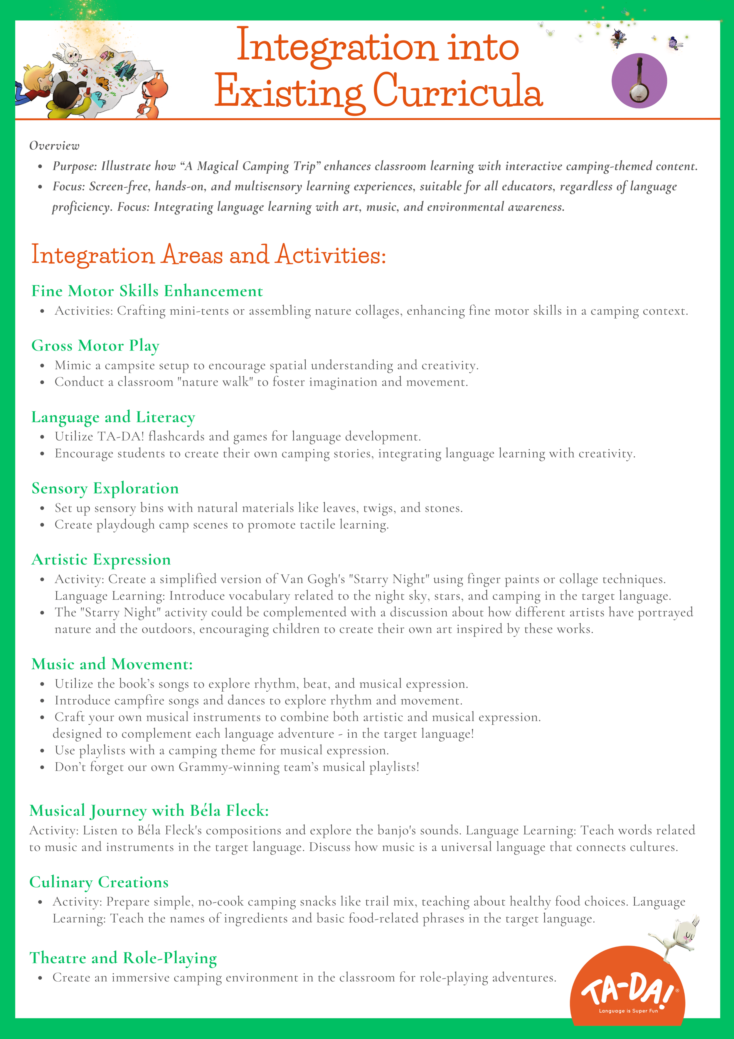 Features of the Camping Language Adventures title: